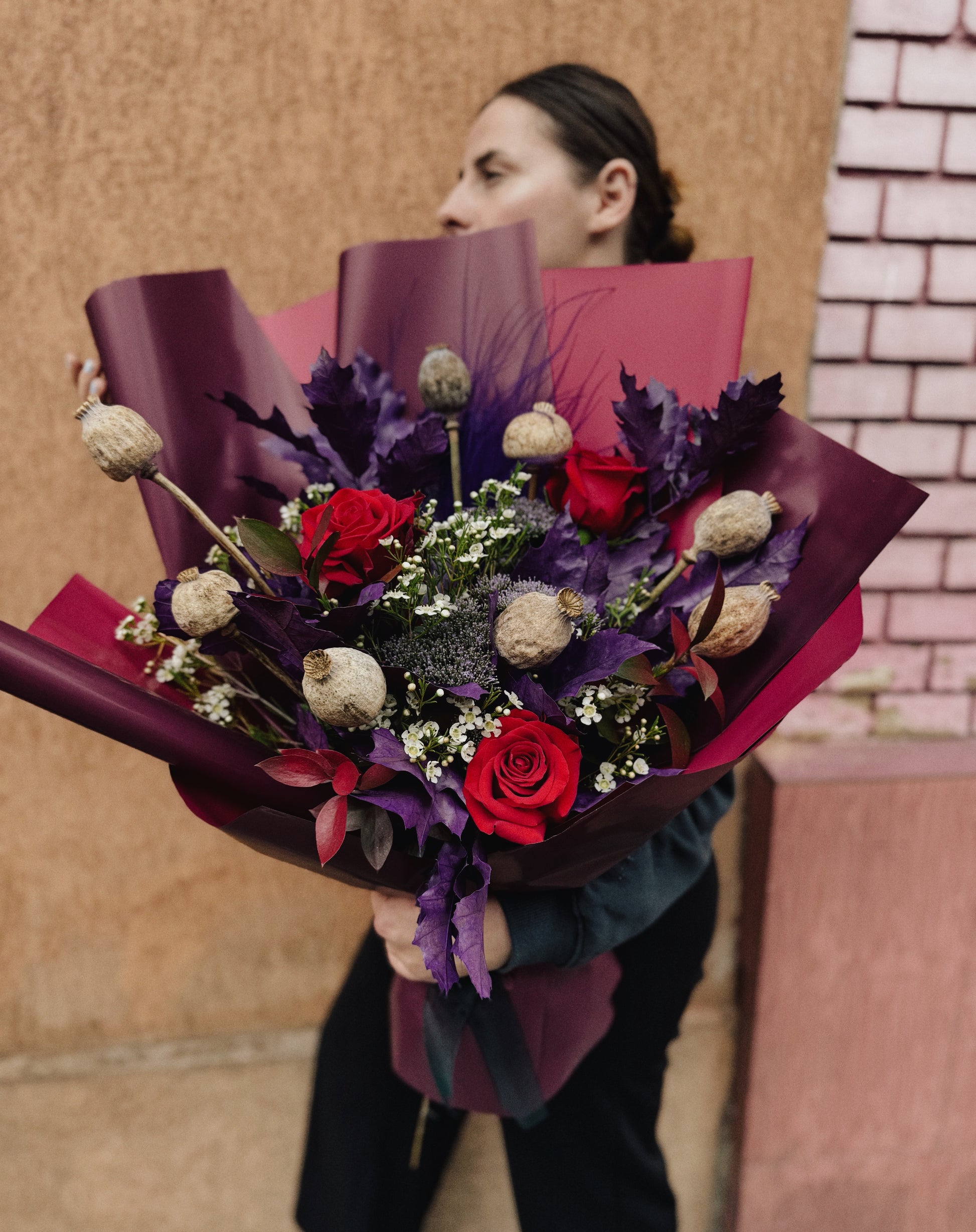 Un buchet intens și spectaculos, în tonuri mov și roșu, pus în valoare de ambalajul burgundi. Creat pentru a transmite emoție, pasiune și rafinament, acest buchet de toamnă este alegerea perfectă atunci când vrei să faci un gest memorabil.