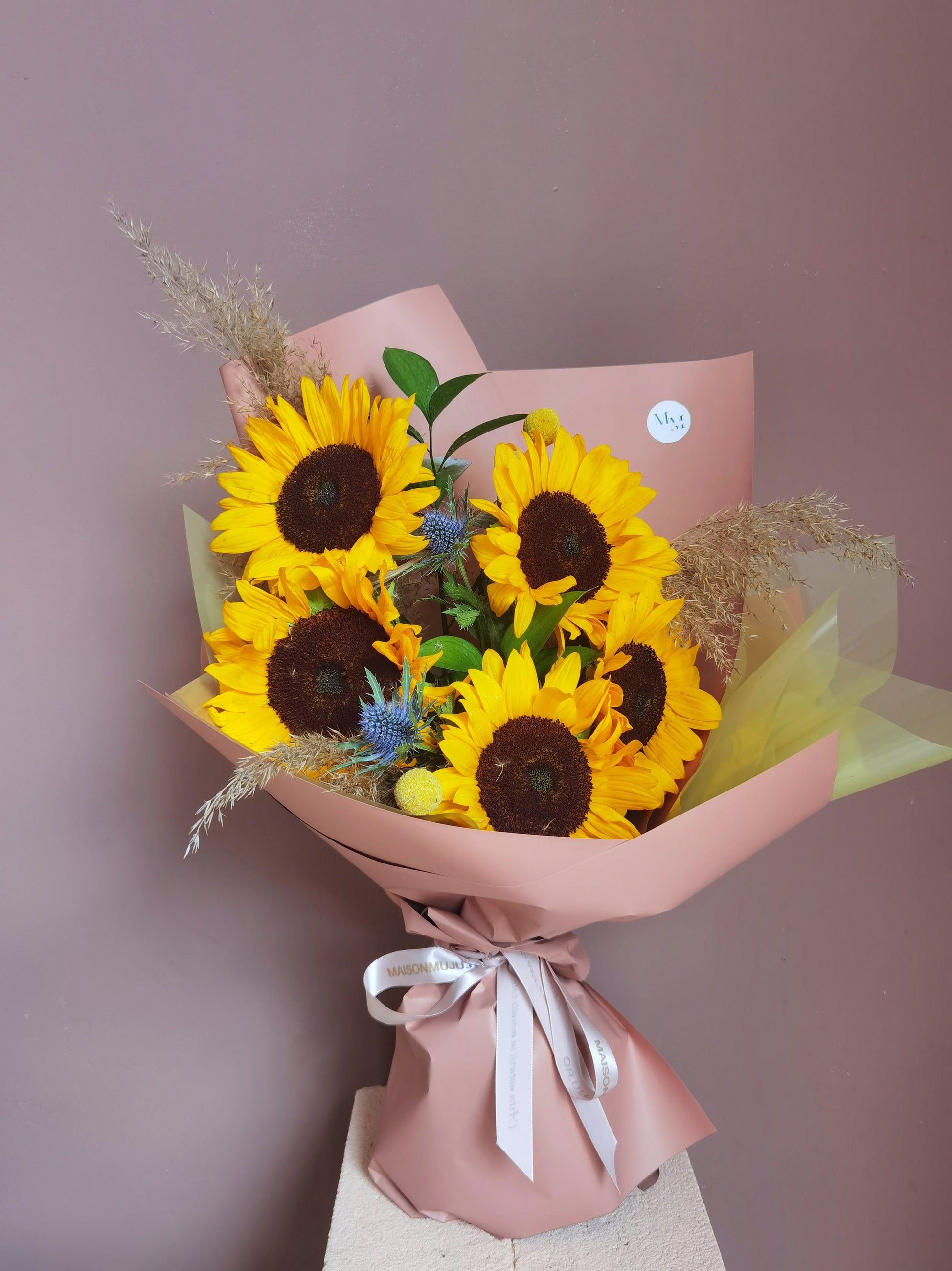Un buchet care nu are nevoie de prea multe cuvinte – floarea-soarelui spune totul, dintr-o privire.
